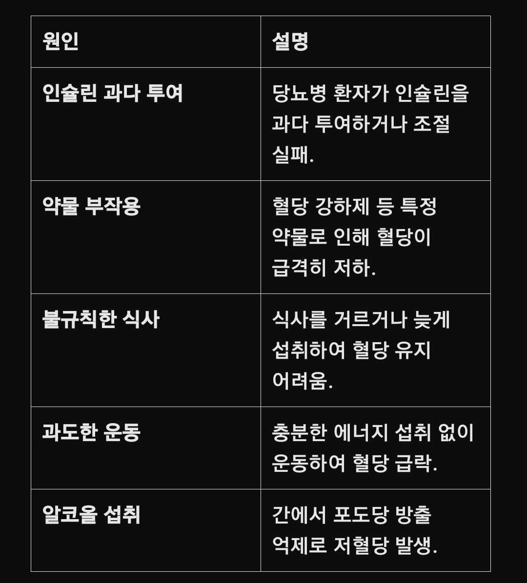 저혈당증은 다양한 원인으로 발생하며, 크게 외부 요인과 내부 요인으로 나뉜다.
