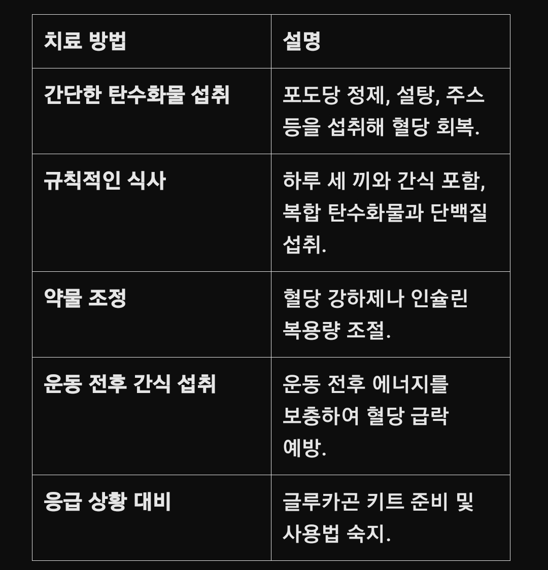 15~20g의 탄수화물을 섭취하고 15분 후 혈당 재측정.