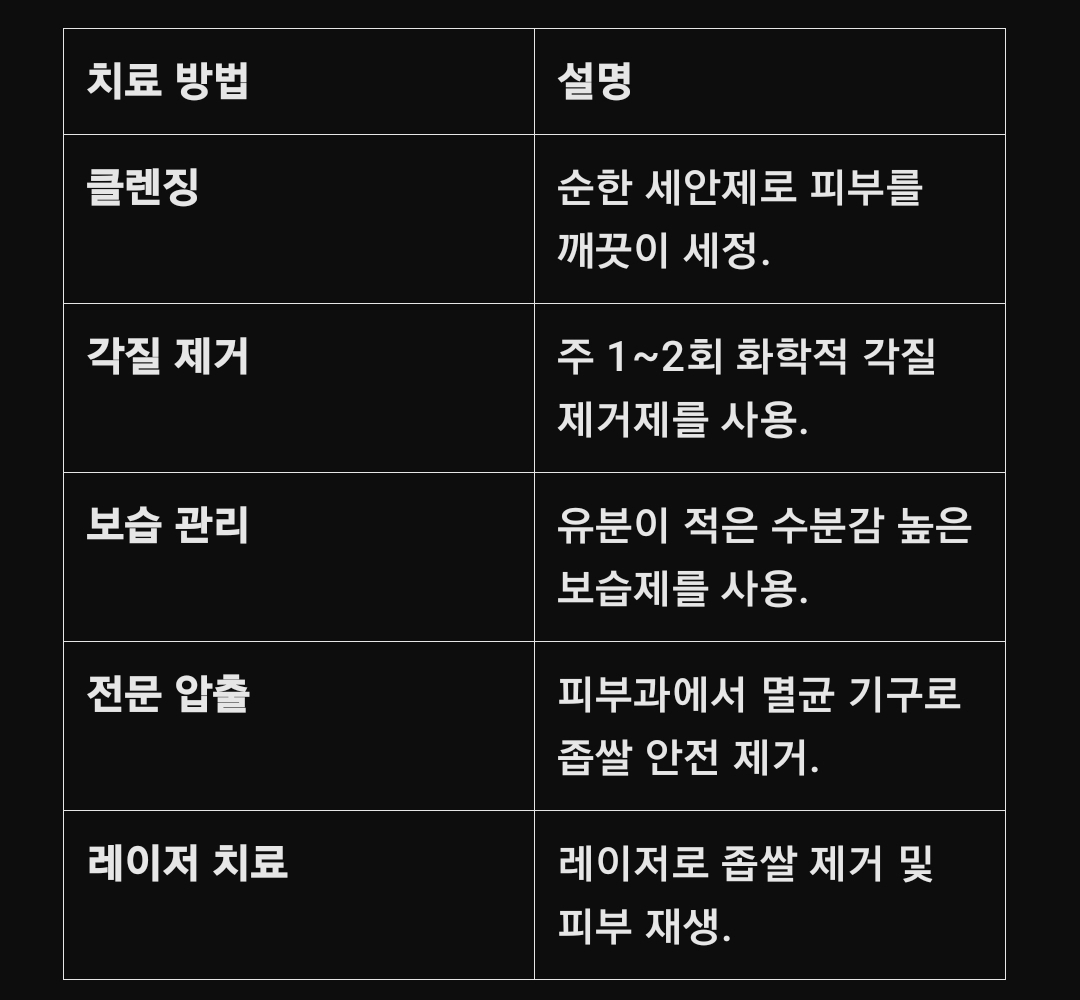 피부과에서 멸균 기구로 안전하게 압출하여 흉터를 방지.