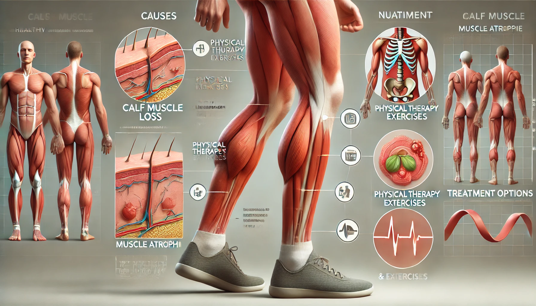 근육 소모성 질환(예: 근위축성 측삭 경화증, 다발성 경화증)이나 영양 부족, 호르몬 변화(예: 갑상선 기능 저하증)도 종아리 근육 감소의 원인이 될 수 있습니다.