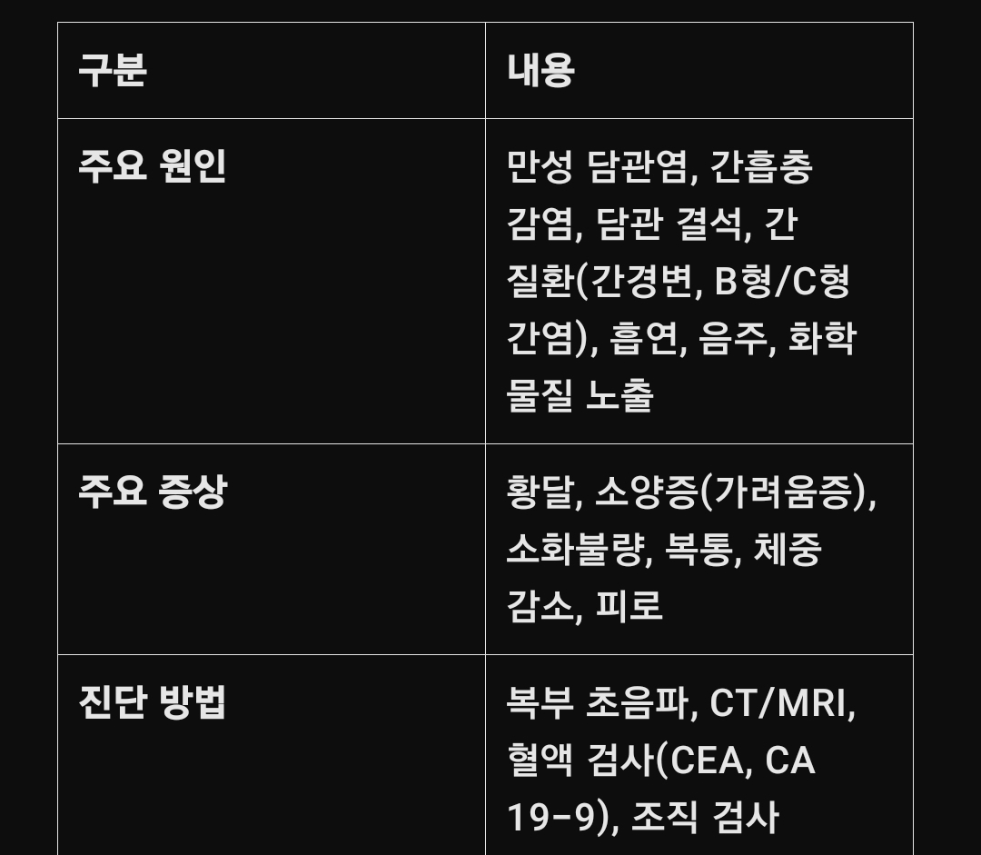 담관암은 조기 발견이 어려운 만큼 예방과 관리가 중요합니다.