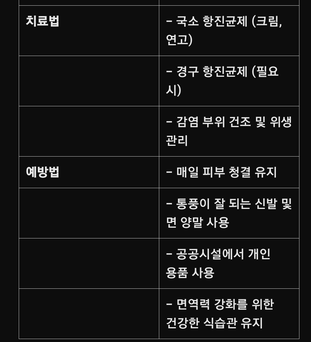 1. 피부 건조 유지: 습기 찬 환경을 피하고, 샤워 후 수건으로 꼼꼼히 닦기.