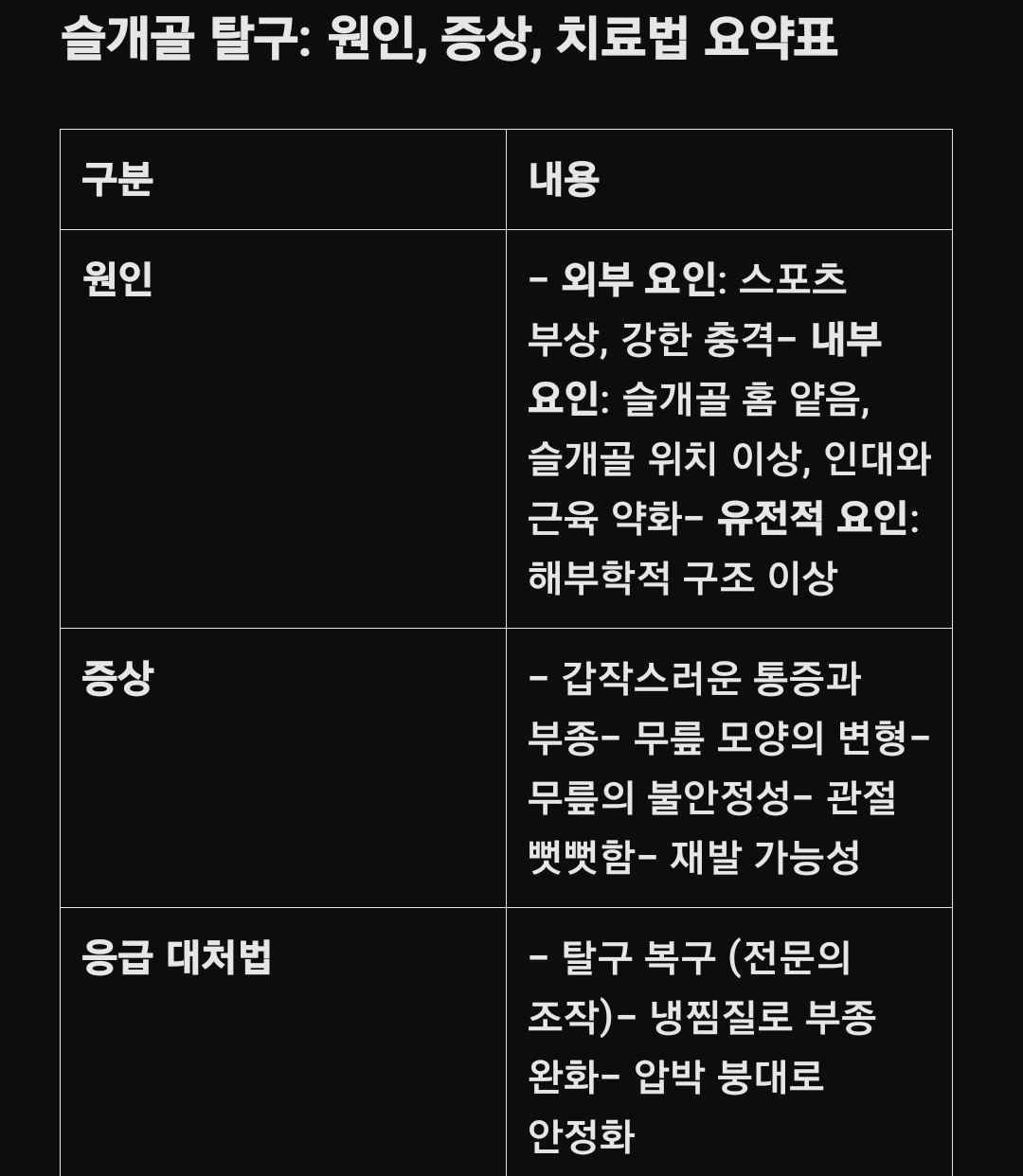 탈구가 발생할 때 심한 통증이 즉시 나타납니다.