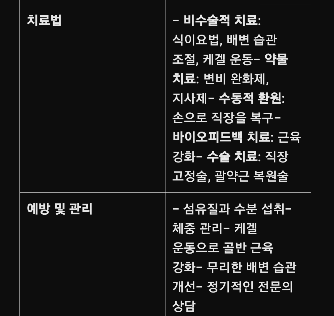 항문과 직장을 제어하는 근육을 강화하고 조절 능력을 회복시키는 치료법입니다.