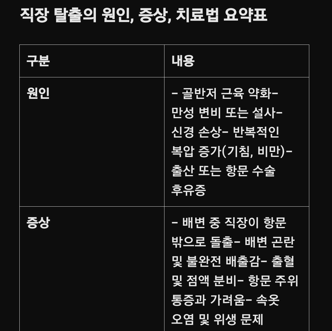 직장 탈출: 원인, 증상, 그리고 치료법 이야기