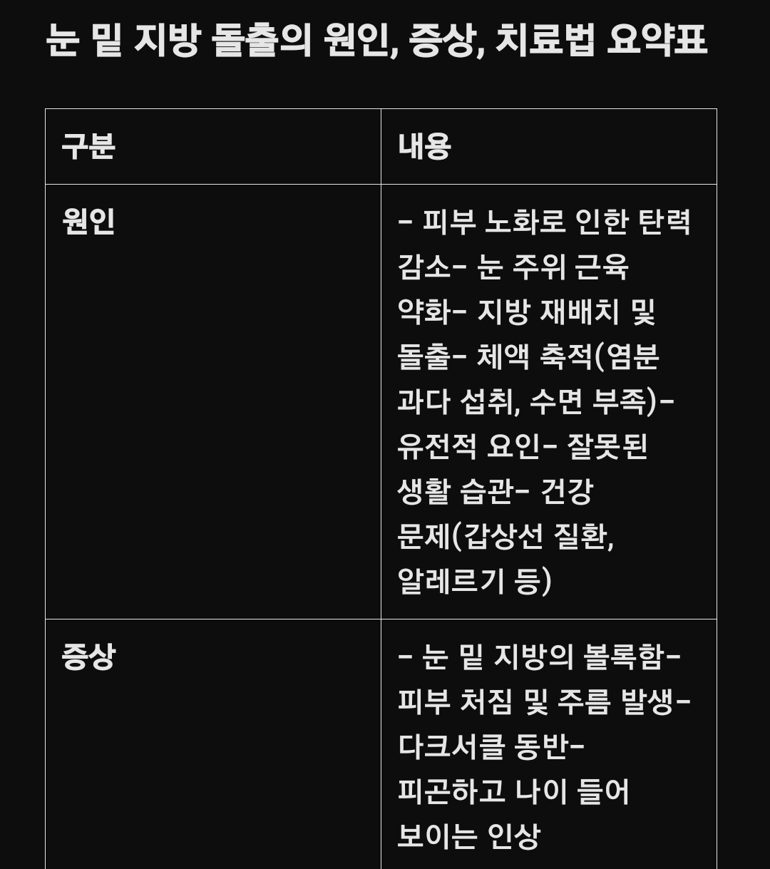 이번 글에서는 눈 밑 지방 돌출의 원인, 증상, 그리고 치료법에 대해 알아보겠습니다.