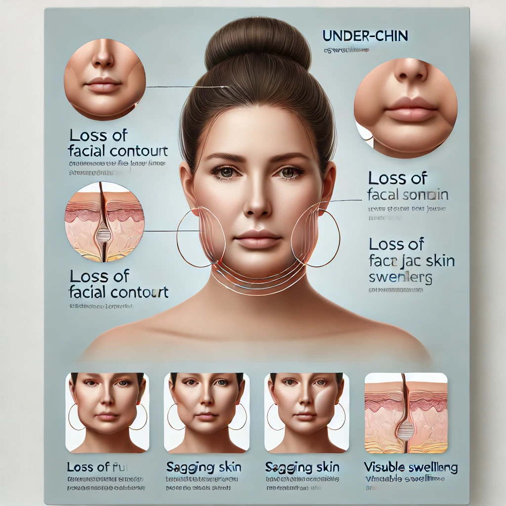 탄력을 잃어 턱 아래가 부어 보일 수 있습니다.