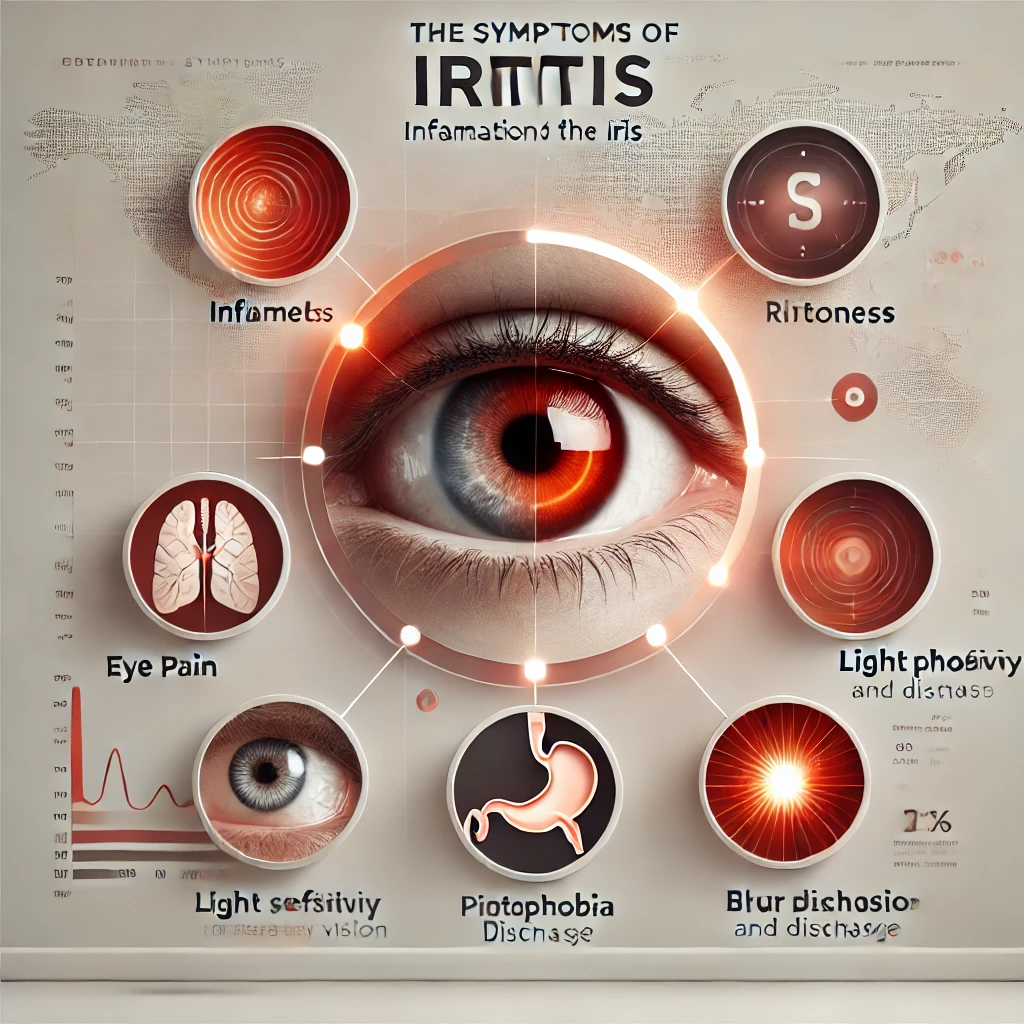 홍채염은 눈의 통증, 충혈, 시력 저하 등으로 나타나며,