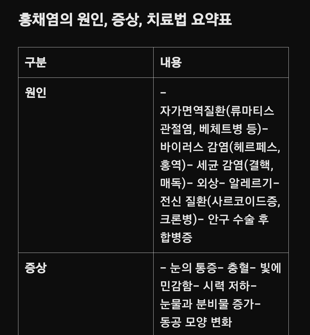 이번 글에서는 홍채염의 주요 원인, 증상,