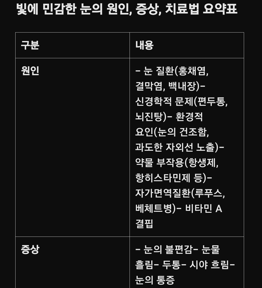 이번 글에서는 빛에 민감한 눈의 주요 원인, 증상,