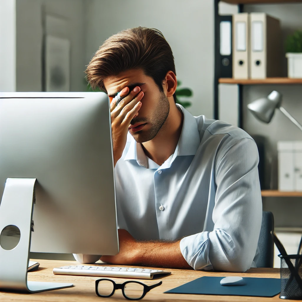 설명: 장시간 컴퓨터, 스마트폰, 태블릿 등의 디지털 기기를 사용하면서 눈이 과도하게 긴장한 상태.
