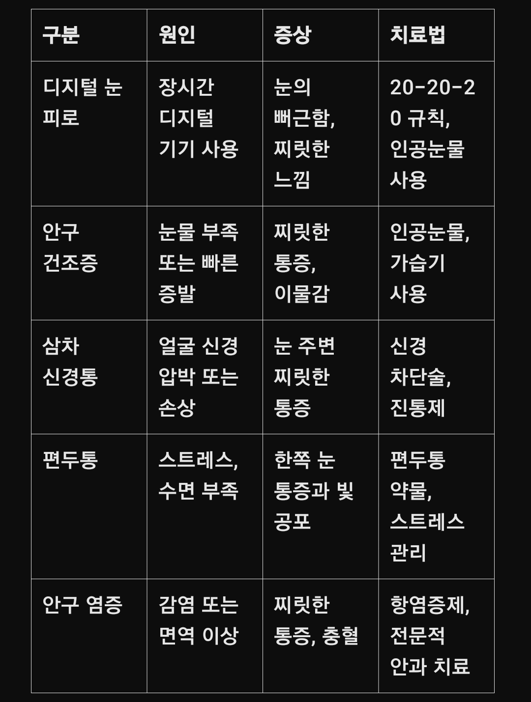 원인: 화면을 오래 응시하며 눈을 자주 깜빡이지 않음.