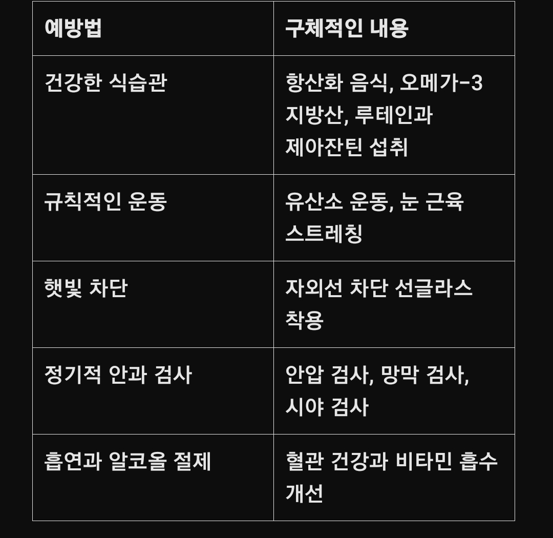 눈 건강 관리: 백내장, 녹내장, 황반변성 예방