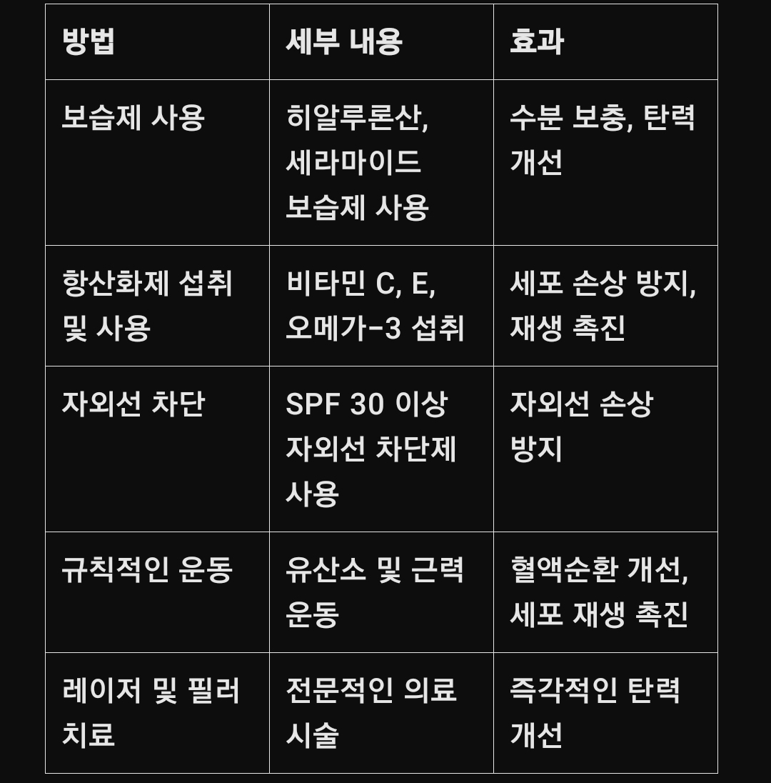 피부 탄력 관리는 중년 이후 건강과 아름다움을 동시에 유지하는 중요한 요소입니다. 일상에서 스킨케어 루틴을 철저히 지키고 건강한 생활습관을 유지하면, 피부 탄력 저하를 효과적으로 예방할 수 있습니다. 위 사례들을 참고해 본인에게 맞는 방법을 선택해 실천해 보세요.