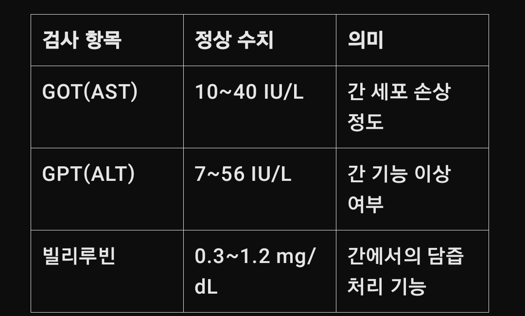 혈액 검사를 통해 간 효소와 관련된 수치를 확인합니다. 이는 간 손상 여부를 파악하는 기본적인 방법입니다.