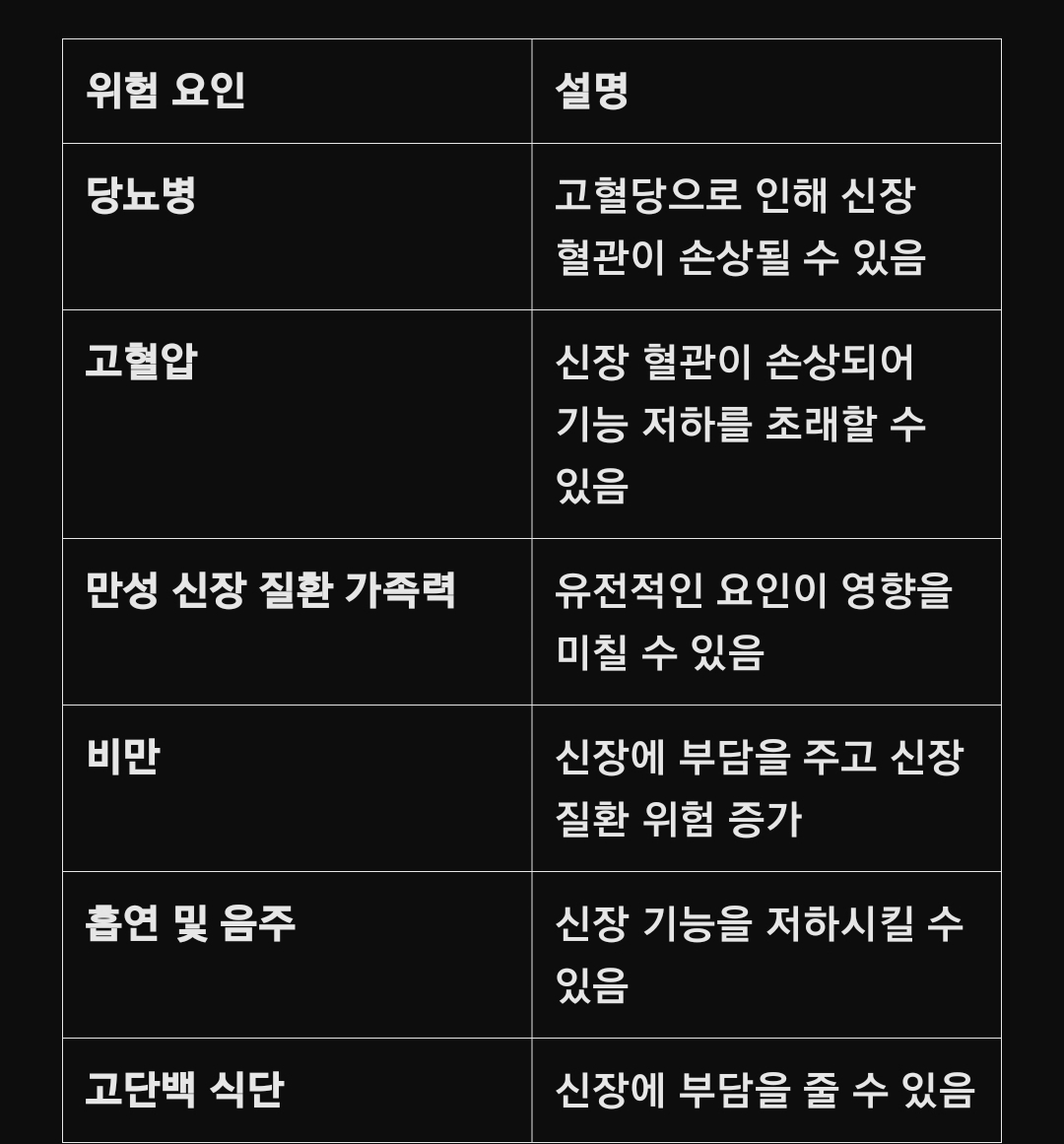 신장 질환은 다양한 요인에 의해 발생할 수 있으며, 다음과 같은 조건을 가진 사람들은 정기적인 검사가 필요하다.