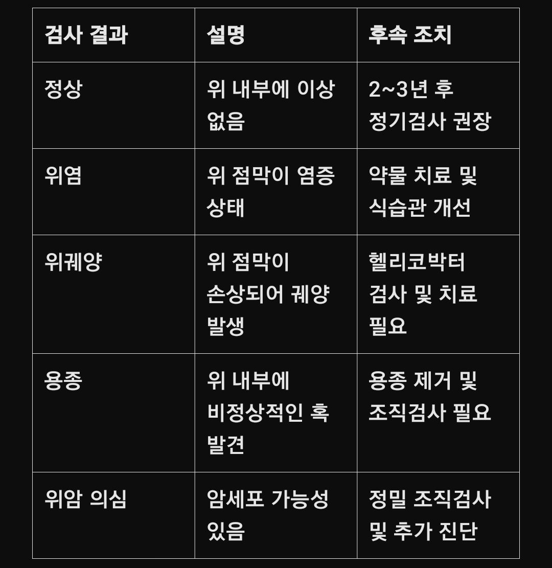 위내시경 검사는 위염, 위궤양, 위암을 조기에 발견하고 치료하는 가장 효과적인 방법이다. 특히, 위암은 증상이 없거나 가벼운 증상으로 시작되기 때문에 정기적인 검사가 필수적이다. 40세 이상 성인은 2~3년마다 내시경 검사를 받으며, 위장 질환이 있거나 가족력이 있는 경우 더 자주 검사하는 것이 좋다. 건강한 위를 유지하기 위해 올바른 생활습관과 정기검사를 실천해야 한다.