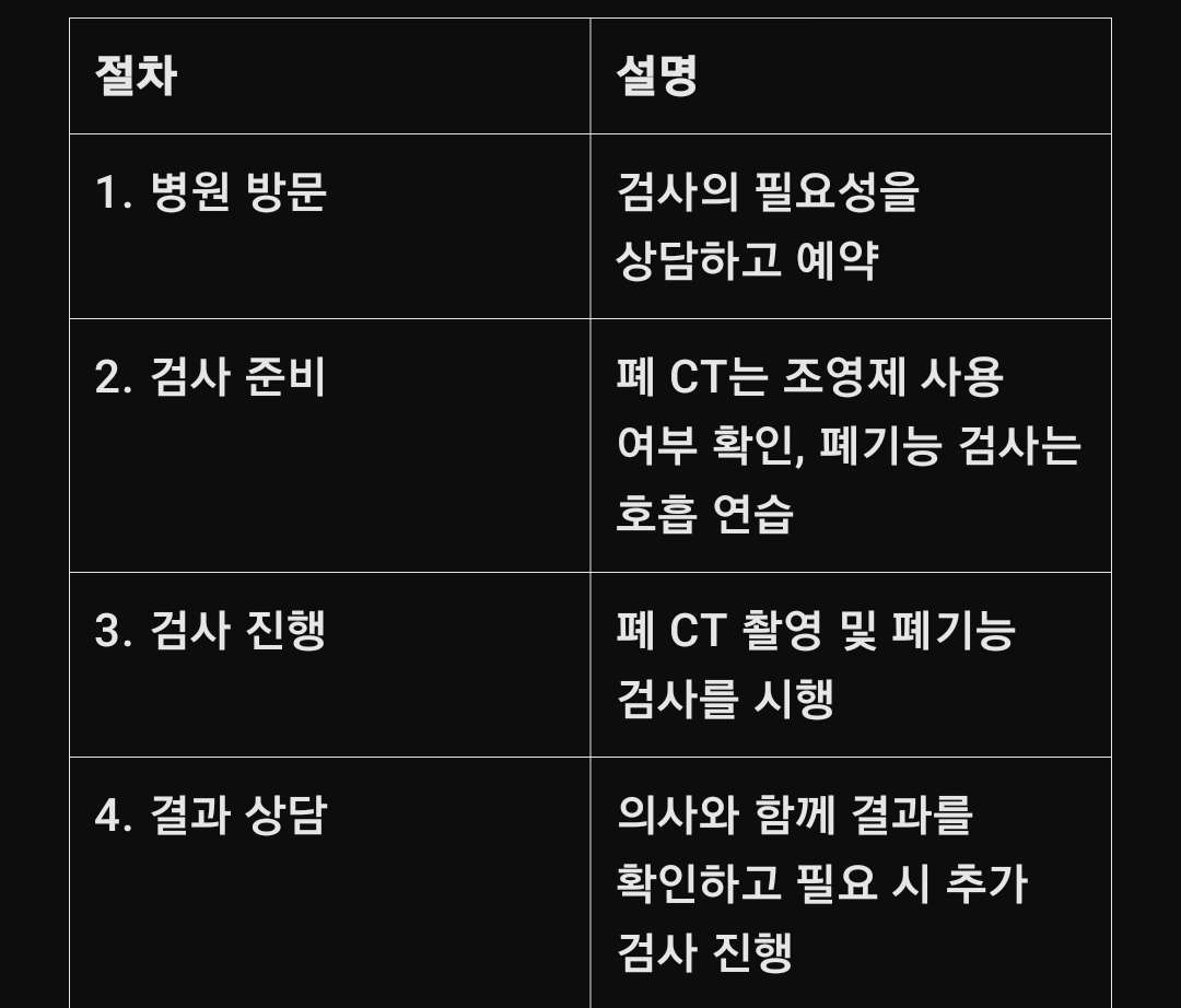 6. 폐 CT 및 폐기능 검사의 진행 절차