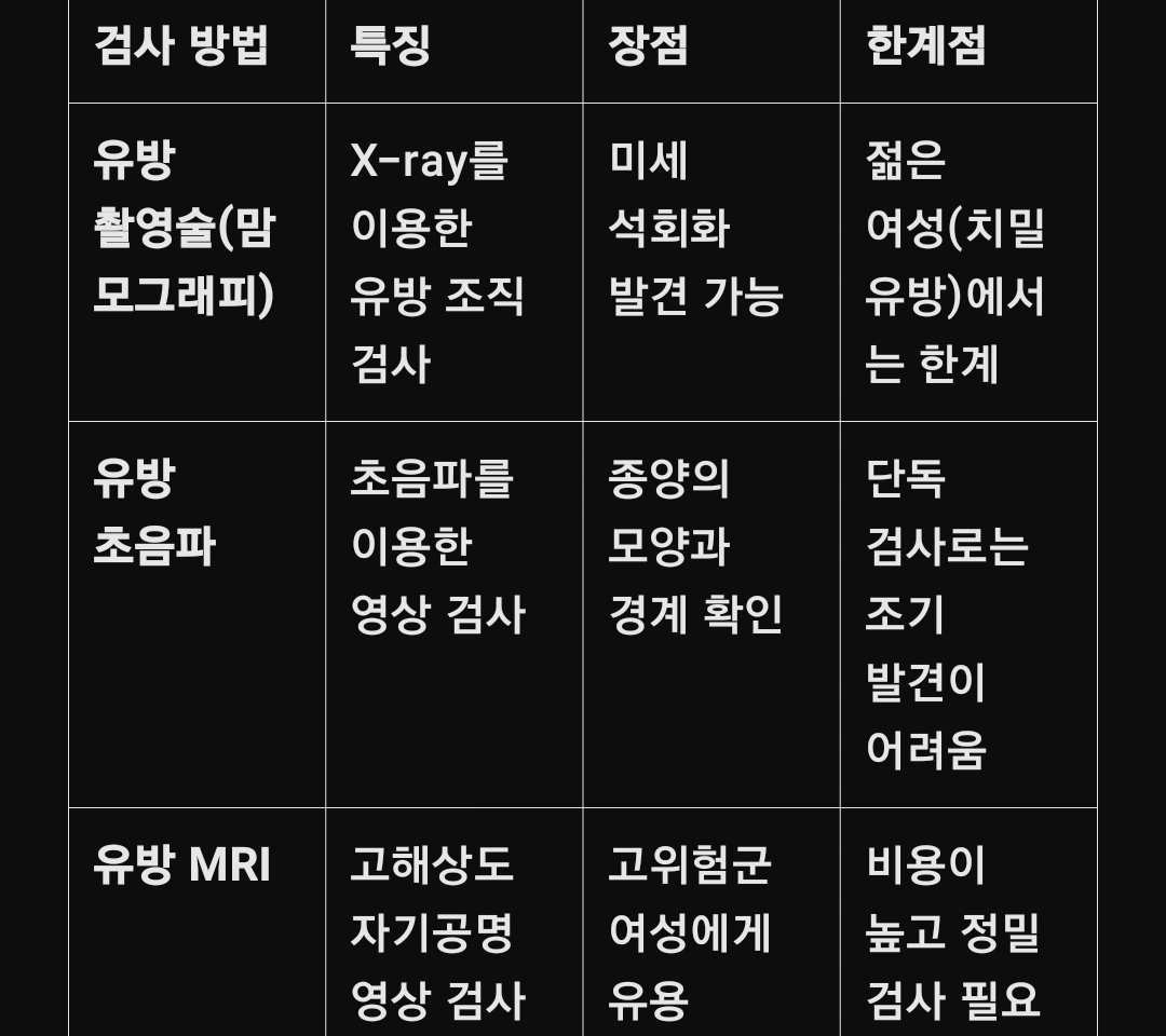 ✅ 유방 촬영술 + 초음파 검사를 병행하면 정확도가 높아진다.