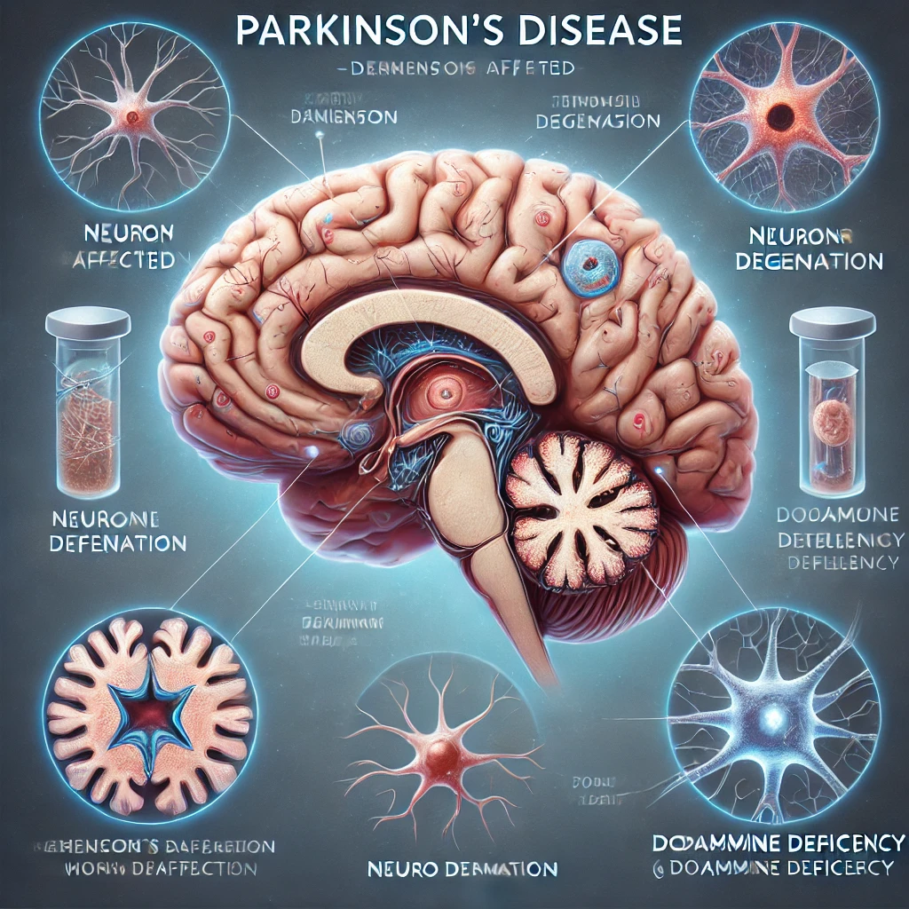 **파킨슨병(Parkinson's disease)**은 뇌의 흑질(substantia nigra) 영역에서 도파민을 생성하는 신경 세포가 서서히 사멸하여, 운동 조절에 이상이 생기는 퇴행성 신경계 질환입니다. 주로 중장년층 이후(50~60대)에 발병률이 높으며, 특징적으로 손떨림(진전), 경직, 서동(움직임 느려짐), 자세 불안정 등을 나타냅니다.