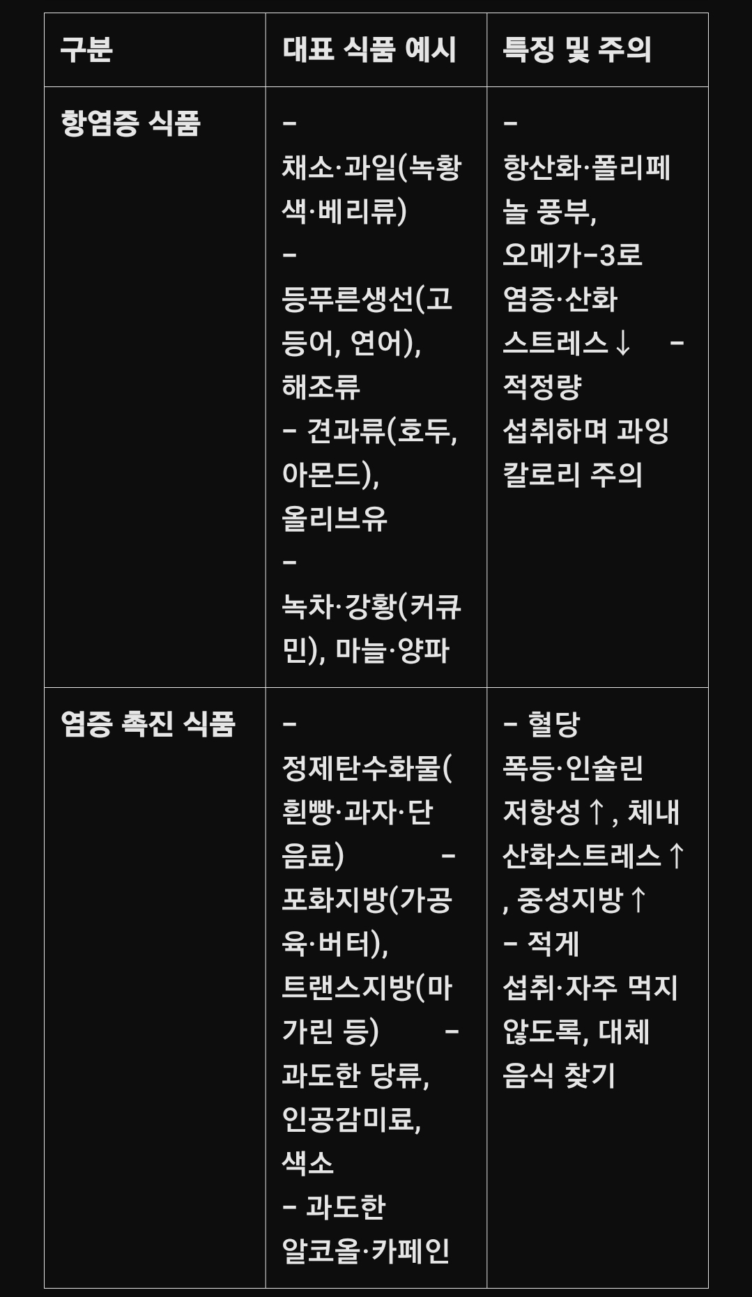 7. 항염증 식품 vs 염증 유발 식품 정리표