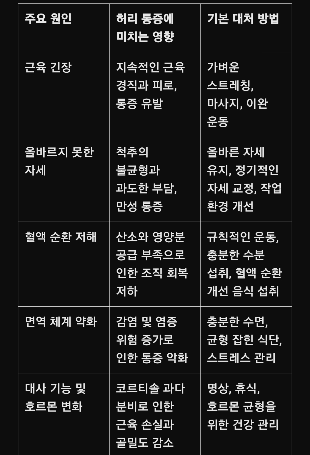 스트레스를 관리하고 허리 건강을 지키는 것이 중요합니다.