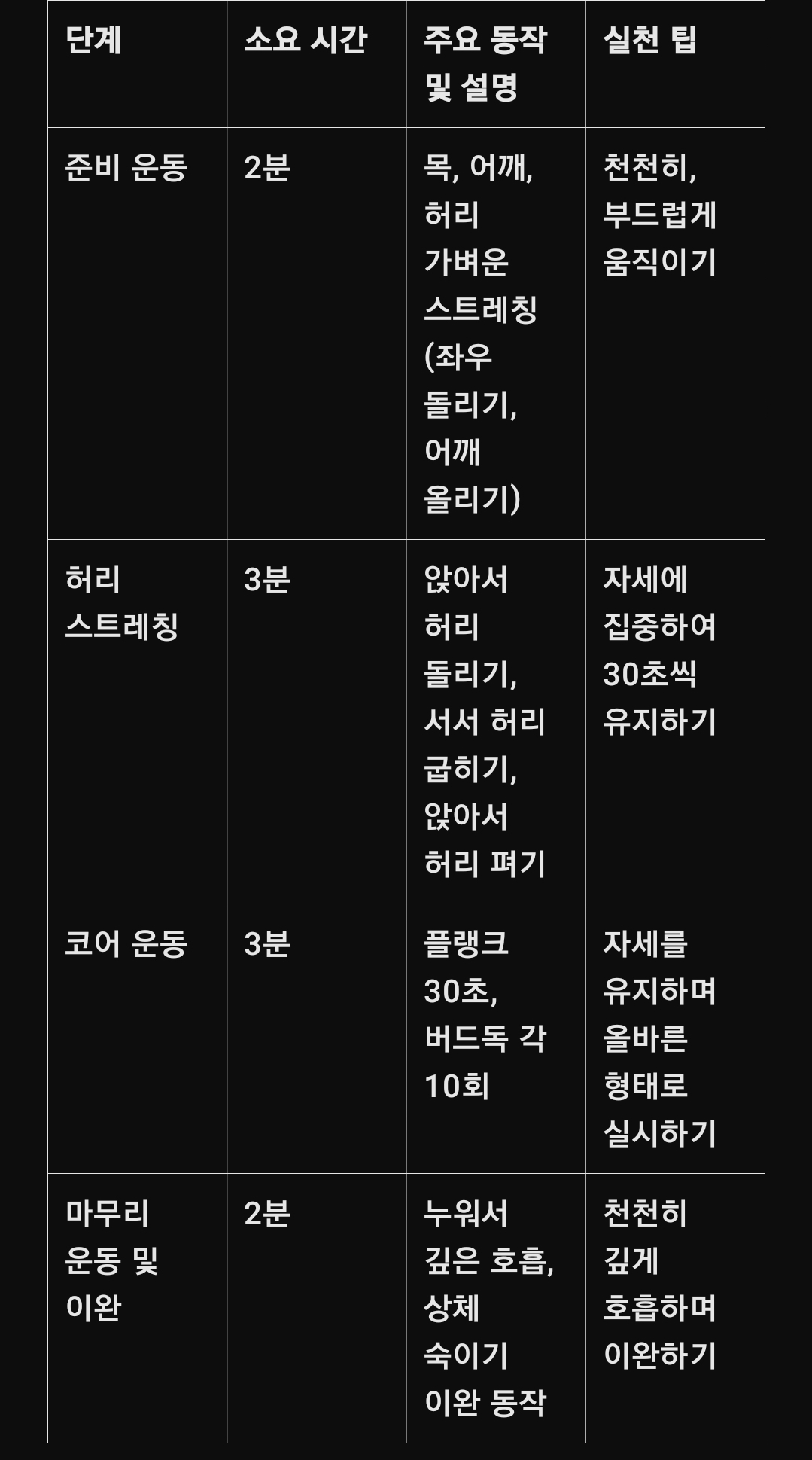 다음은 허리 건강을 위한 하루 10분 루틴 만들기