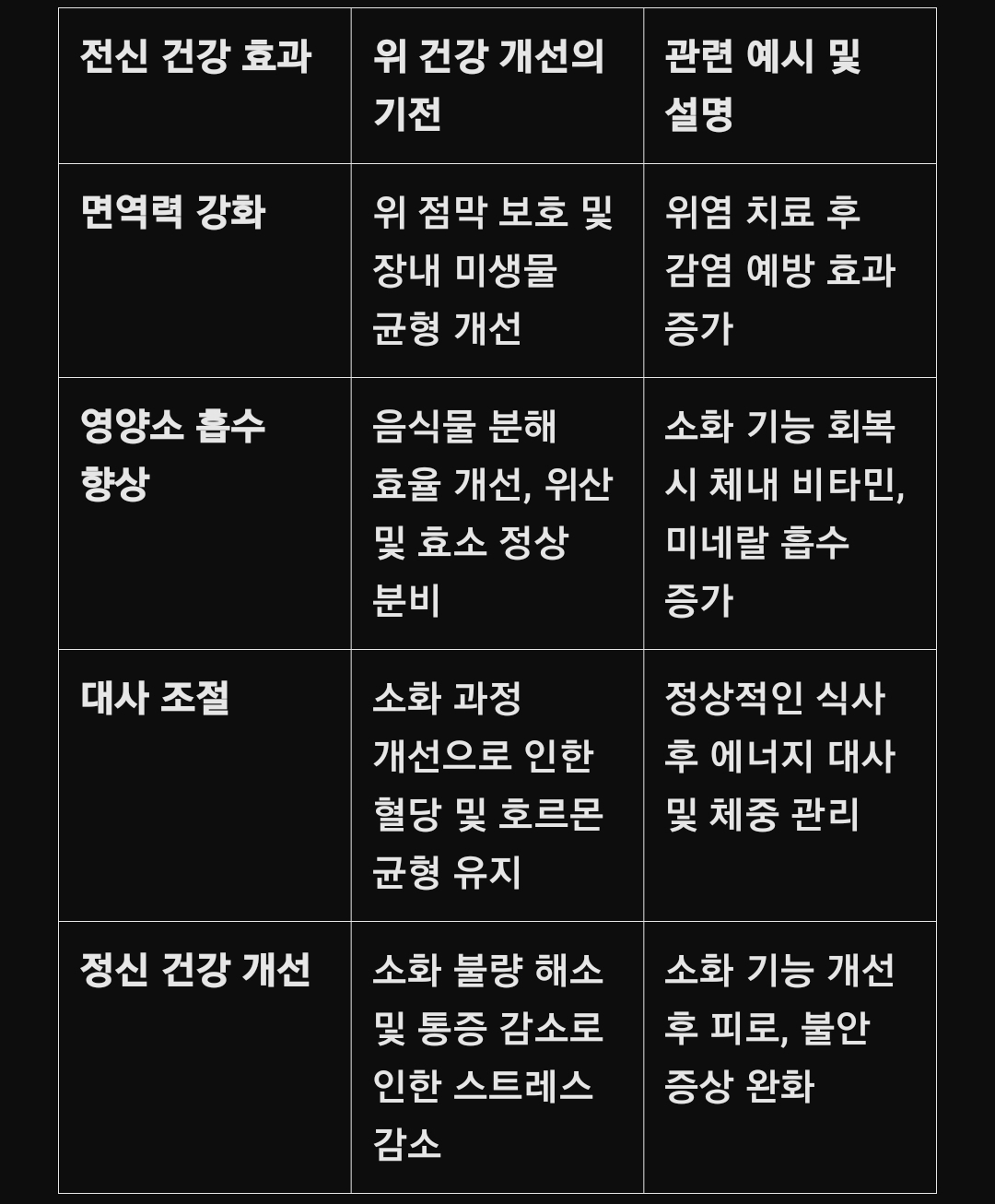 위 건강 개선이 전신 건강에 미치는 긍정적인 효과는