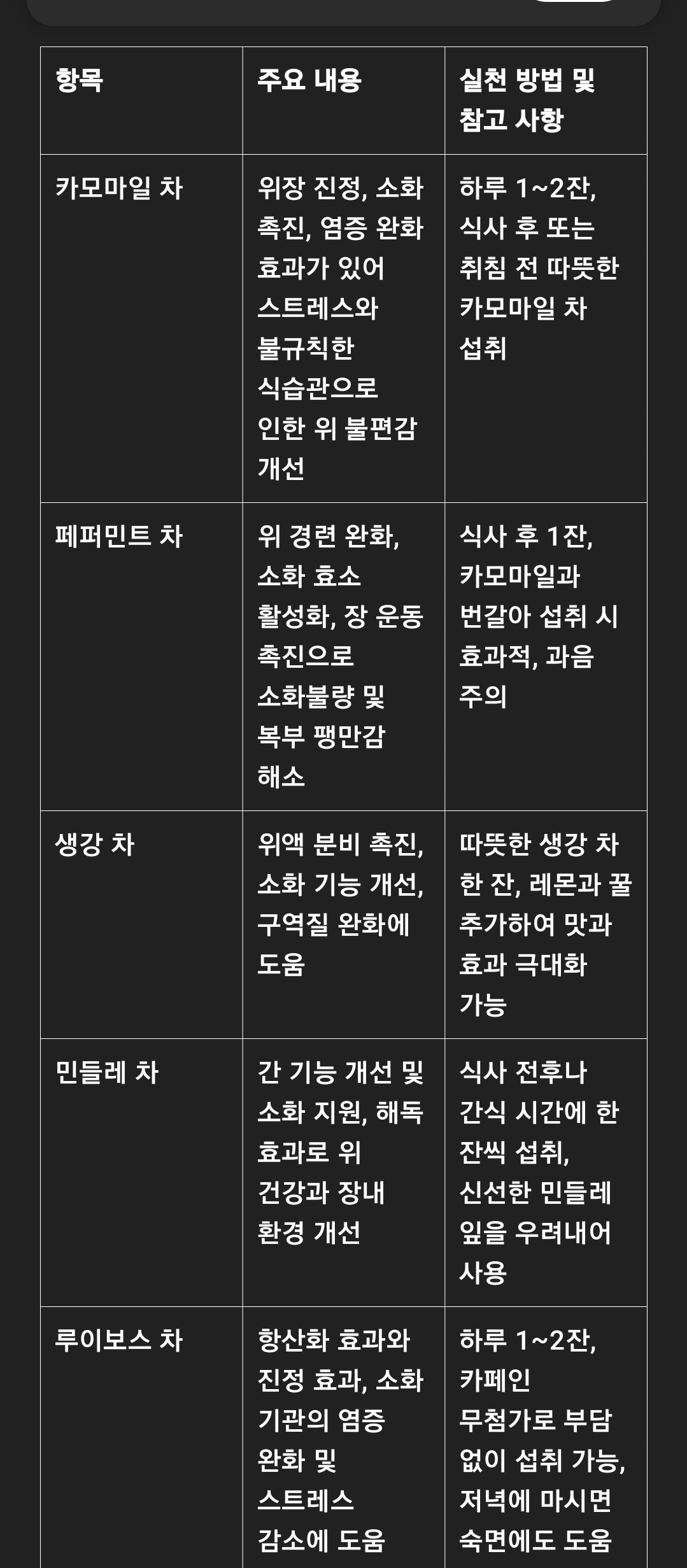 2. 위 건강에 도움이 되는 허브 차의 효능