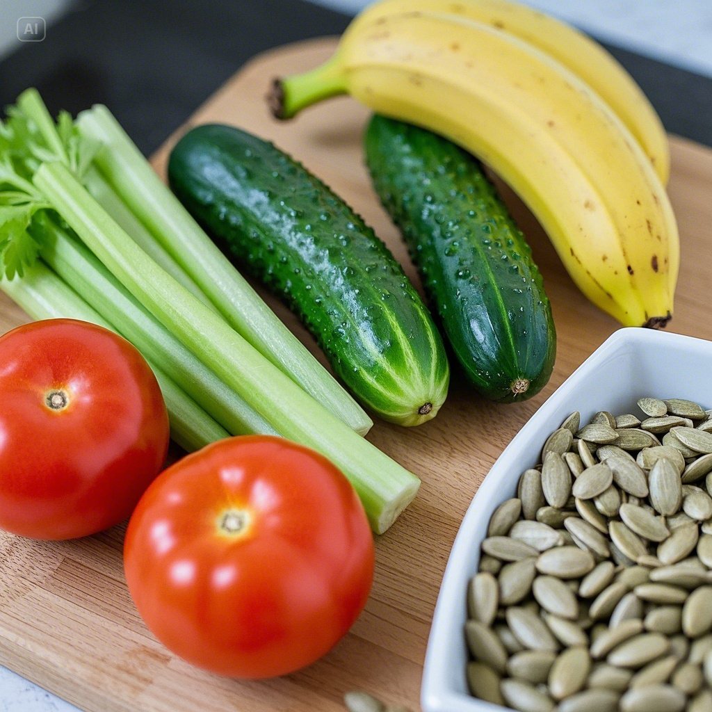 예를 들어, 수분 함량이 높고 칼륨이 풍부한 음식은 체내 나트륨 농도를 조절해