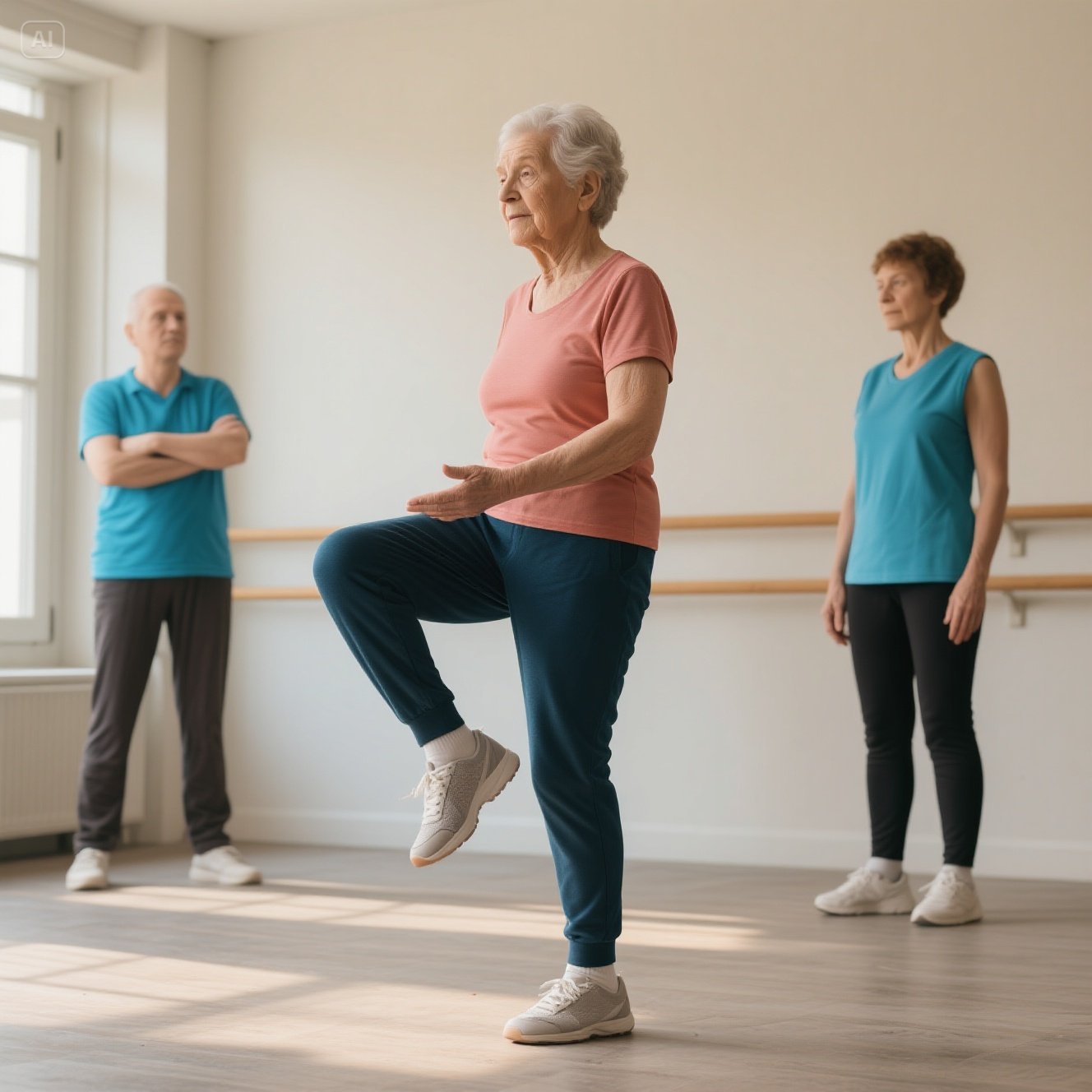 한 발 서기는 균형을 맞추는 능력을 기르는 가장 기본적인 훈련입니다. 초기 단계에서는 지지대나 벽에 손을 대고 서는 것이 좋습니다.