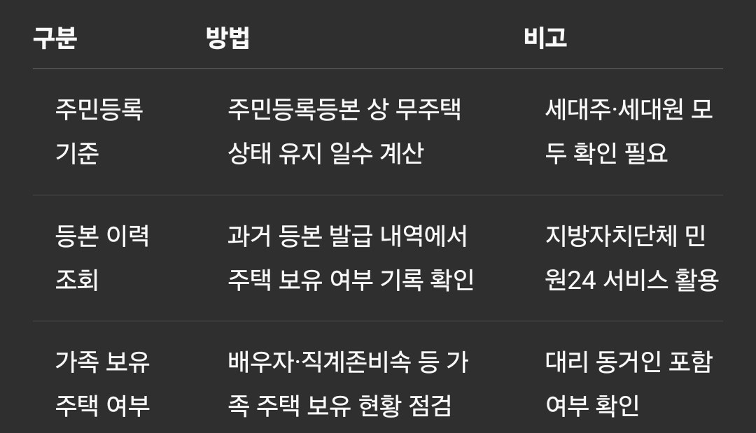 주민등록등본 상 배우자·자녀·부모 등 세대원 주택 보유 여부