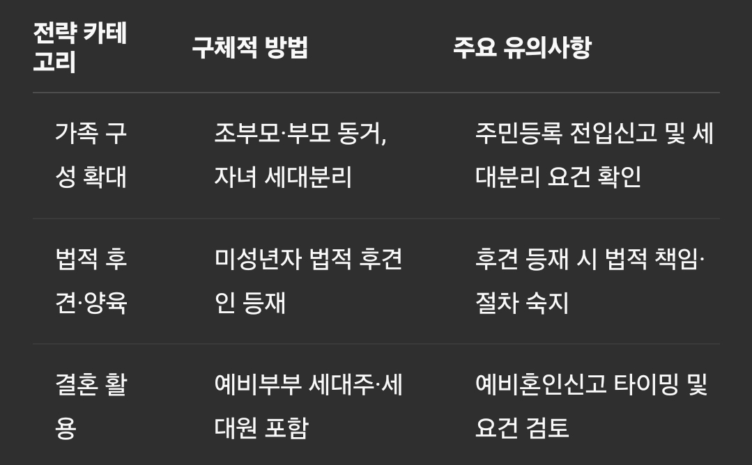 유의사항: 세대분리 시 부양가족 수 증가 하나, 통장통장 소멸·가점 영향 고려