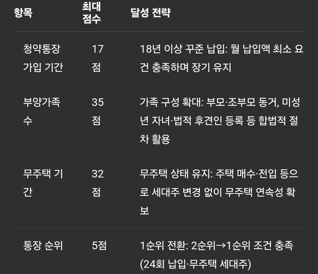 지금 가점이 낮아 고민이라면, 아래에 제시할 합법적이고 전략적인 팁을 통해 50점 이상 달성 가능한지 확인해 보세요.