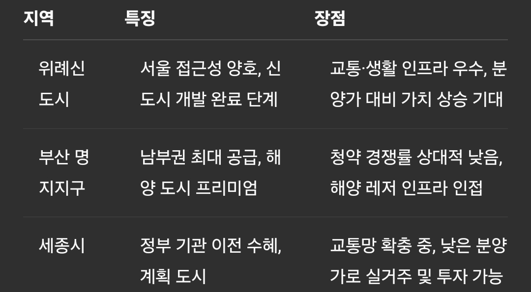 신혼부부 특별공급은 지역과 시기, 자격 요건을 면밀히 분석해야 당첨 확률을 높일 수 있습니다. 위례신도시·부산 명지지구·세종시는 30대 실수요자가 중장기 가치 상승과 실거주 만족도를 동시에 노릴 만한 지역입니다. 오늘 소개한 전략을 참고해 청약 준비를 차근차근 진행해 보세요.