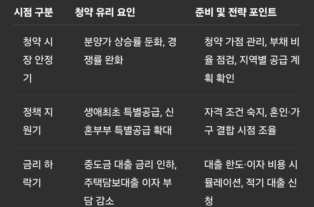 시점 구분 청약 유리 요인 준비 및 전략 포인트