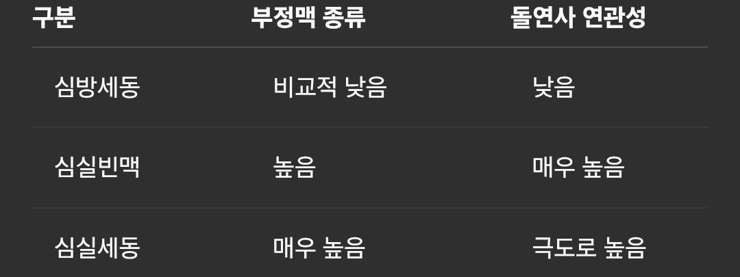 이번 글에서는 부정맥이 왜 생명을 위협하는지, 특히 어떤 종류의 부정맥이 돌연사와 밀접한 관련이 있는지를 살펴보고, 실제 사례와 함께 어떻게 사전에 위험을 인지하고 대응할 수 있는지를 안내드리겠습니다.