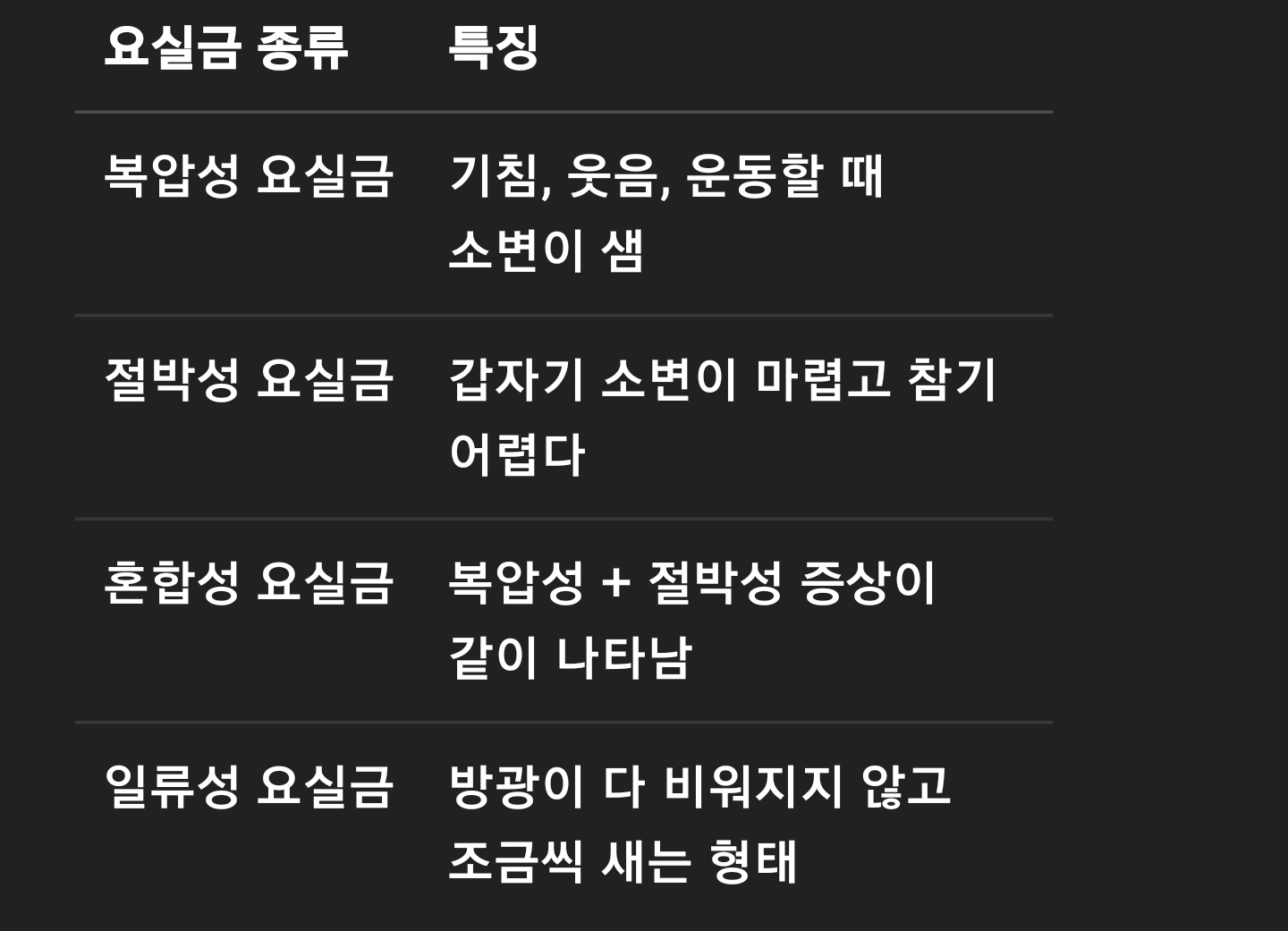요실금 종류 특징