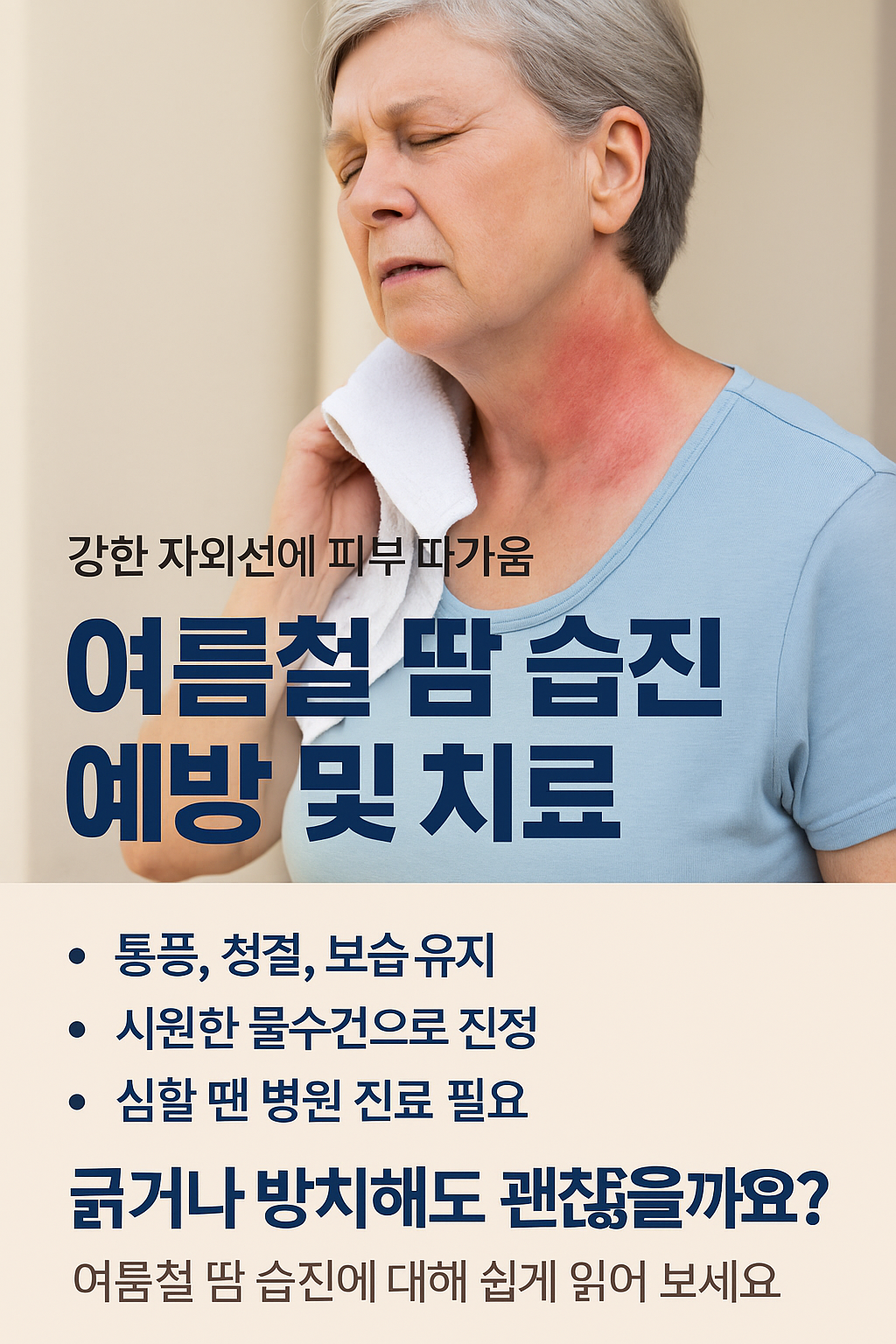 오늘은 50대 이상 분들을 위해 여름철 땀 습진 예방 및 치료법을 쉽게 알려드릴게요.