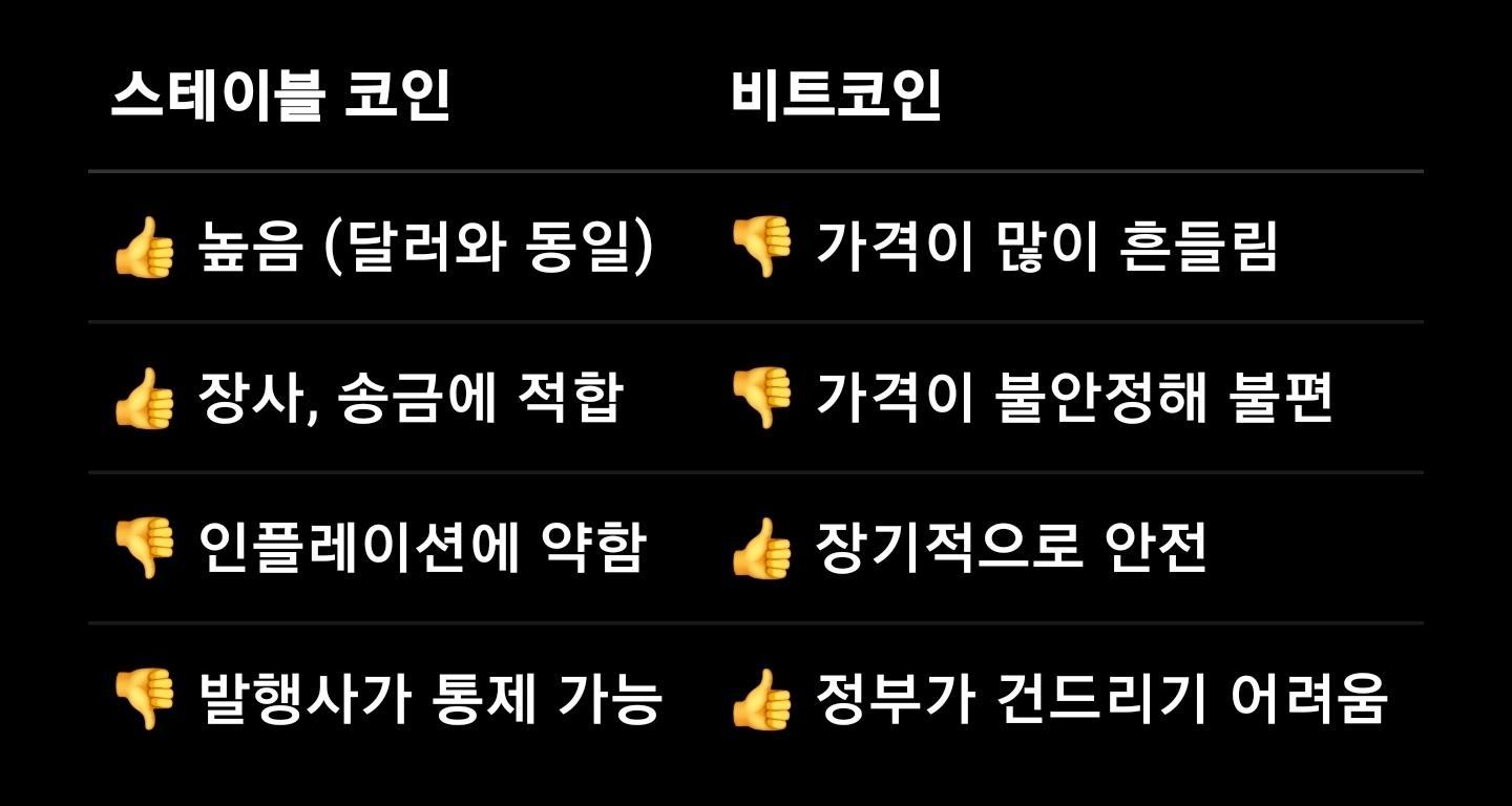 📈 안정성 👍 높음 (달러와 동일) 👎 가격이 많이 흔들림