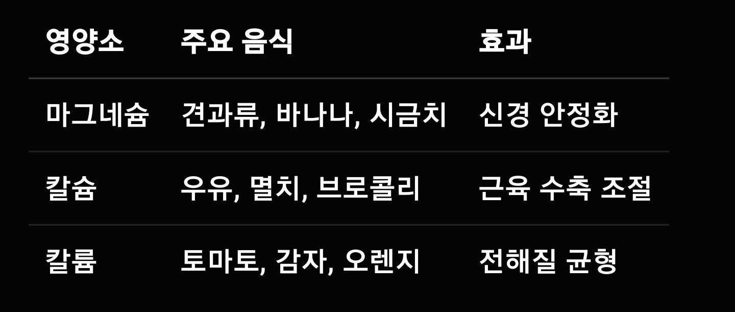 칼슘 우유, 멸치, 브로콜리 근육 수축 조절